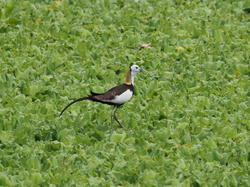 水雉一般外表較樸素,但在春夏繁殖期會大變身,變成白面黑體,後頸成金黃色,翅膀為白色與身體的黑形成對比,由於擁有修長的腳趾,時常優雅的行走於各種水生植物上,因此又被稱為「凌波仙子」。水雉會在浮葉型水生植物像是蓮花、菱角、浮萍等葉子上方築巢,只要一片葉子就能夠支撐水雉與牠的巢。水雉跟彩鷸相同,是一妻多夫制,而雌鳥則是會在產卵後,繼續尋找其牠雄鳥交配,交由雄鳥來孵蛋及育雛,鳥寶寶遇到危險時雄鳥會假裝受傷吸引捕食者,分散捕食者的注意,五十二甲中的黑翅鳶則是牠們的剋星。
