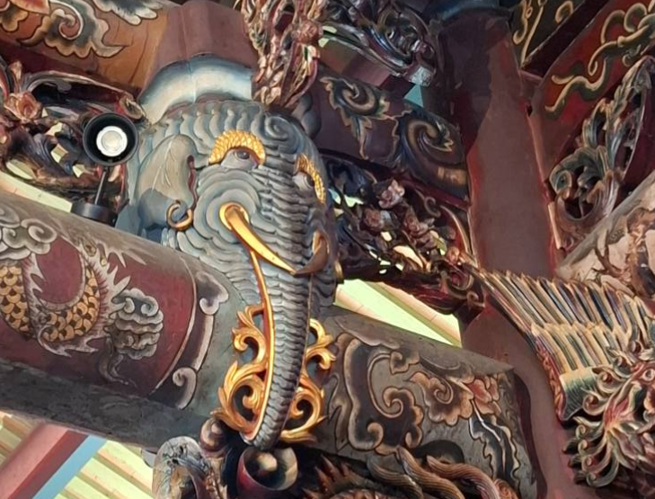 走進五結利澤簡的大廟──永安宮,別忘了抬頭欣賞那精巧而帶點獵奇風格的木雕斗拱,這些作品出自木雕大師陳銀生之手。